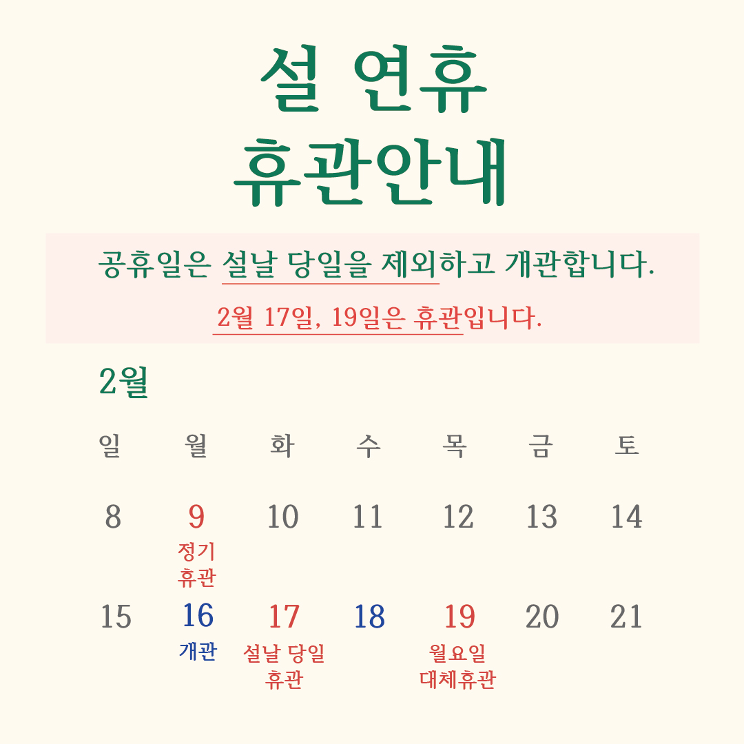 2026년 설 맞이 주말 가족 프로그램 안내 (2월)